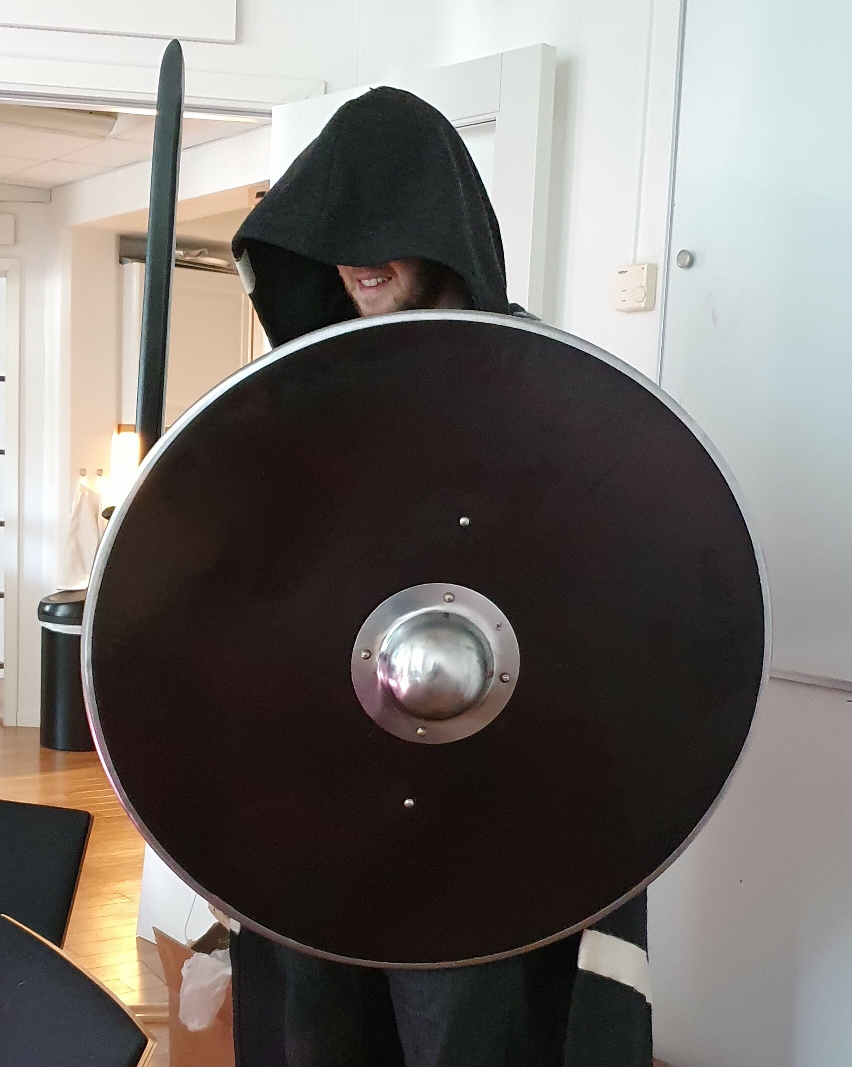 In der Zwischenzeit haben wir im Büro einige Waffen- und Schild-Requisiten erworben (die Schilde sind echt, aber die Waffen nicht so sehr), um sowohl als allgemeine Inspiration zu dienen als auch um uns zu helfen, in Zukunft noch coolere Angriffsanimationen zu erstellen. Und am wichtigsten ist, dass sie Valheim-Schöpfer Richard das Gefühl geben, ein echter Badass zu sein: